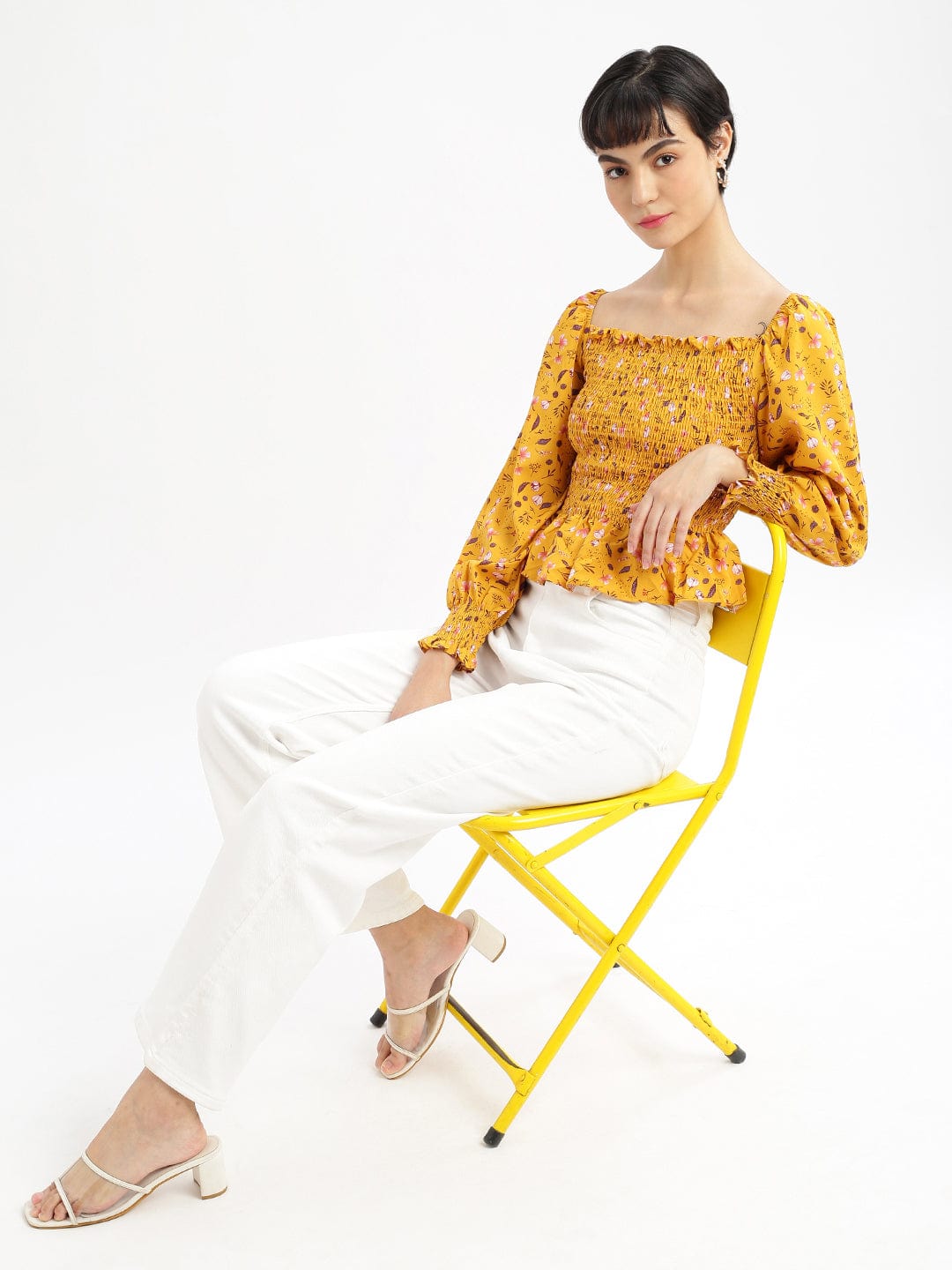 Women's Brown Floral Keyhole Neck Georgette Dress